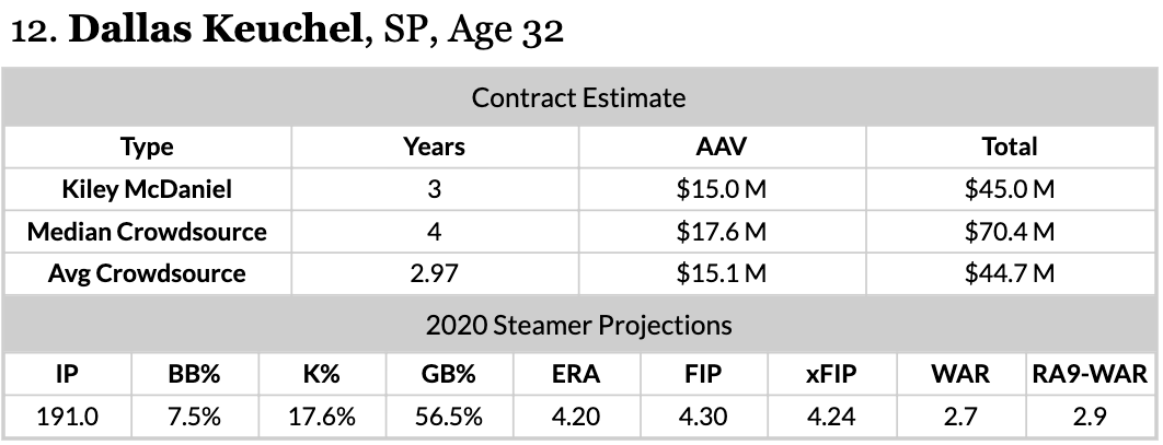 Whether it’s the White Sox or any team, you probably don’t want to go more than three years for Keuchel. The lefty can still be solid, but you should be expecting him to decline as he approaches his mid-30s.