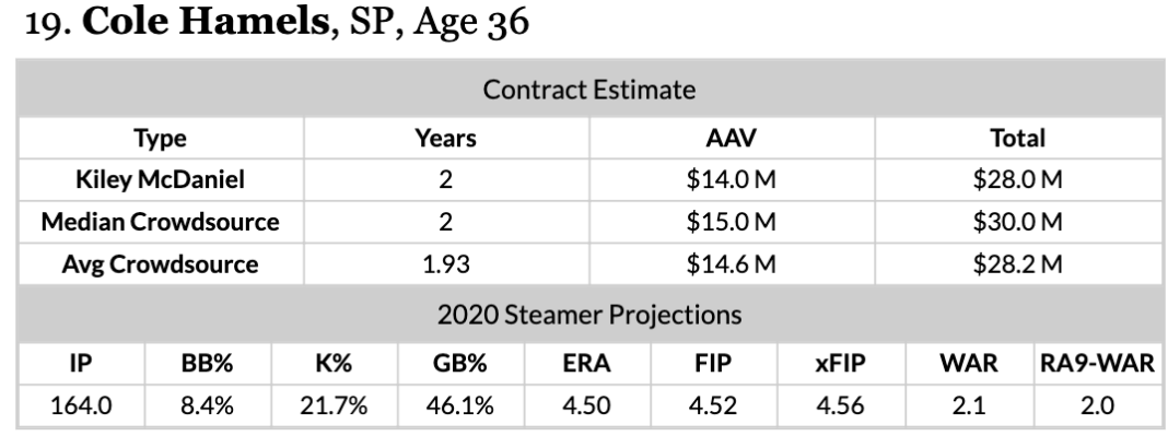 Cole Hamels was having a good season with the Cubs in 2019 and then he went down with an oblique injury. He had one of those in 2017 that derailed his season and guess what happened in 2019?! The Cubs probably didn’t help things out, as they might have rushed Hamels back and the lefty was never the same. Yet, he showed that when he was healthy he was still capable of pitching like an elite starter.