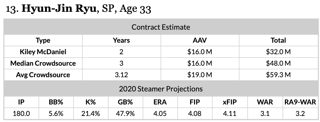 I mean, Hyun-Jin Ryu could be a home run signing for any team. You don’t have to commit to a huge deal and you get a lefty who has a 2.98 ERA in 740.1 MLB innings. Injury concerns might make the White Sox hesitate, but again it’s not like their rotation would be dismantled because if they go after a guy like Ryu, then they might actually sign two free agent pitchers this offseason.