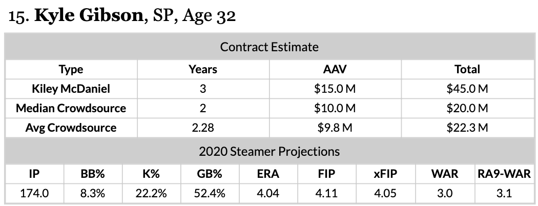 Looks like Kyle Gibson should hire Kiley McDaniel as his agent to really drive up his price.