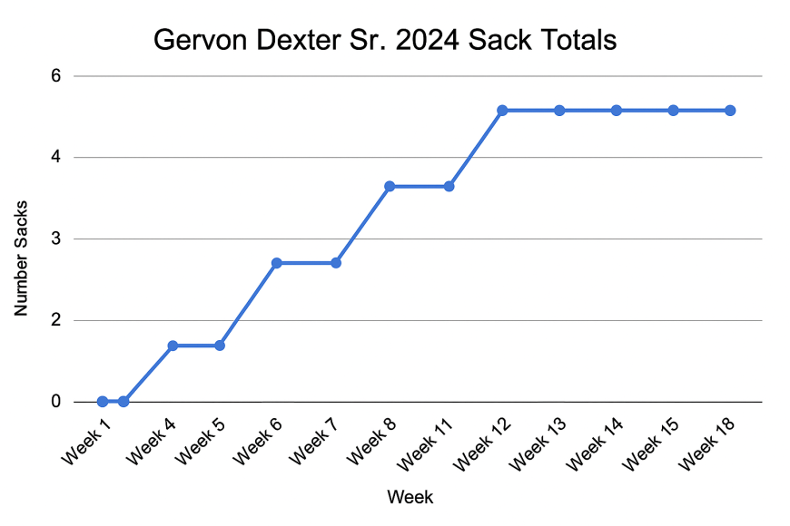 Dexter’s rookie season? A typical “welcome to the league” slap in the face. He had 20 tackles and 2.5 sacks in 16 games. Nothing to write home about, but not shocking either — DTs often need that first season to adjust. Fast forward to 2024, and the man looked like a different animal: 51 total tackles (23 solo), 5 sacks, 18 QB hits, 4 tackles for loss, and 2 fumble recoveries over 15 games, per NFL.com.