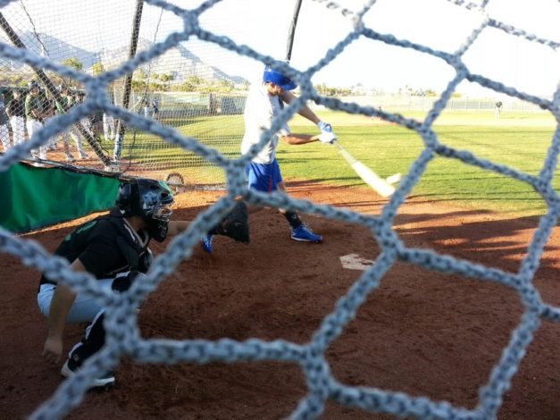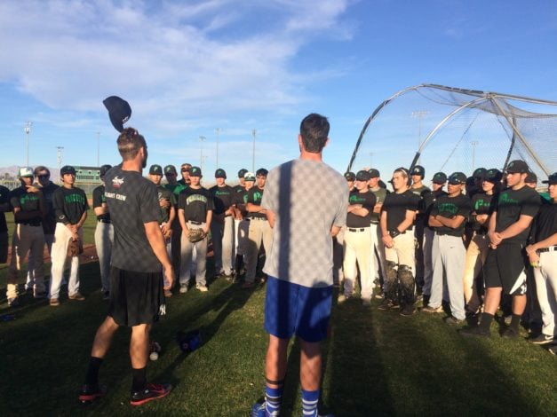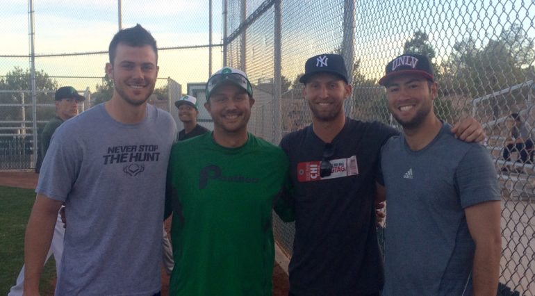 Fiddler left Bonanza in 2013 to accept the head coaching job at Palo Verde High School in Vegas. He kept in contact with both of his former players and always wanted them to come to Palo to take some BP with his team. Obviously the schedules of professional baseball players are pretty hectic but Fiddler got his wish on February 7, 2015.
