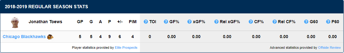 If you’ve been following the Blackhawks this season, then you know Jonathan Toews has been on an absolute tear to start this season. Toews has had some help this offseason in the form of a new trainer, Adam Oates. He currently has 9 points (5G, 4A) in 5 games.