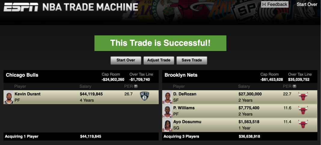 It’s not every day a star like Kevin Durant is available in the trade market. The last time a Top 3 Player was traded was Kareem Abdul-Jabbar in 1975. It won’t be easy to land a superstar like Durant, but the Bulls, as currently constructed, do not have a choice. Either go all-in for Durant or consider tanking themselves. Just don’t be stuck in limbo.