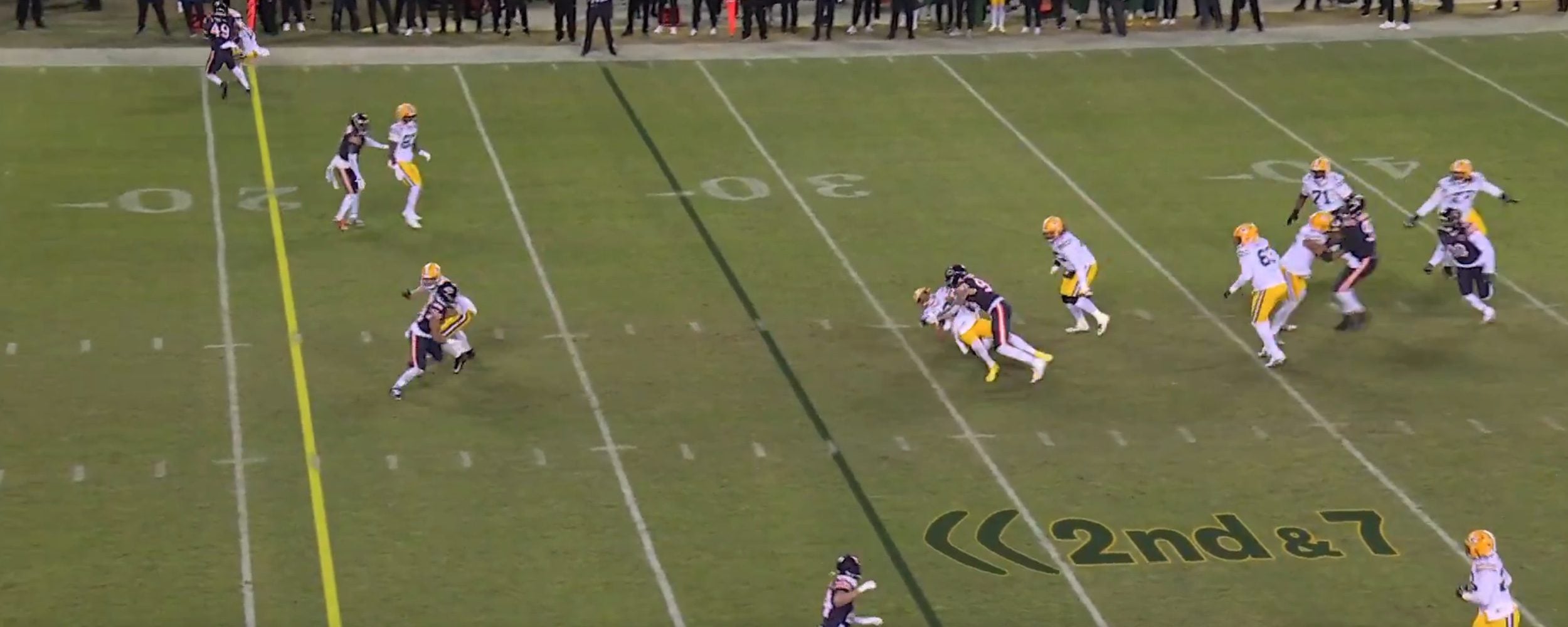 9. What a turn of events. Bears set up a couple of third and longs on the Packers’ ensuing drive. On one, Jordan Love hit Doubs on a slant against Kevin Byard and converted a big first down into field goal range.