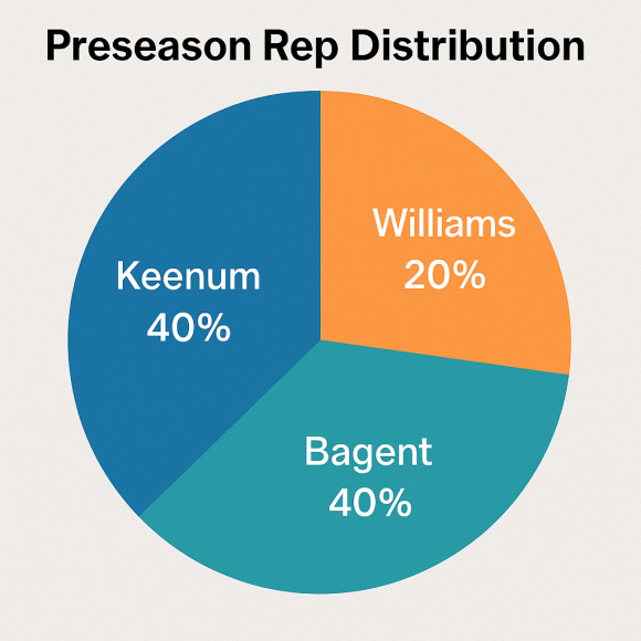 Behind Caleb, we’ve got Case Keenum, a seasoned journeyman — 11 seasons, 66 starts, brought the Vikes to the NFC title game in 2017. That résumé alone could fill a binder on veteran QB survival.