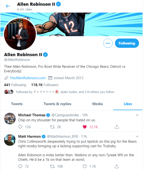 If this tweet didn’t confirm how Robinsion felt towards Collinsworth’s comments, his recent likes will.