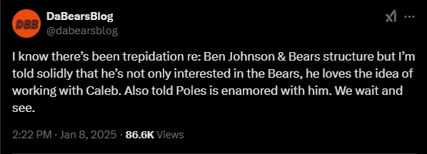 Hughes explained even further on Twitter a few hours later, stating that Johnson is excited about working with Caleb Williams. Poles is a big fan of the young coordinator.
