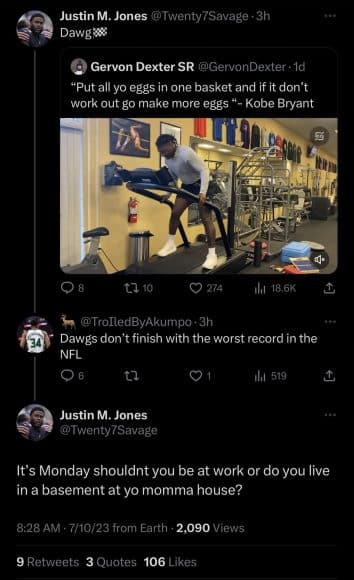 I believe its common for fans to forget that athletes are humans just like us. Although most will bite their tongue and rarely respond to comments/trolls.. some don’t. Which can make for amazing content to consume. The latest example of this happens to be with Bears defensive tackle Justin Jones who already sounded off a few weeks back declaring his distaste for Packers fans. Today’s online altercation occurred out of no where. Jones was simply showing love to Bears defensive tackle Gervon Dexter Sr. and hyping him up with a quote tweet. Seemed harmless but of course there is always that one person in the comments that will do their best to garner a reaction. Safe to say, he got it.