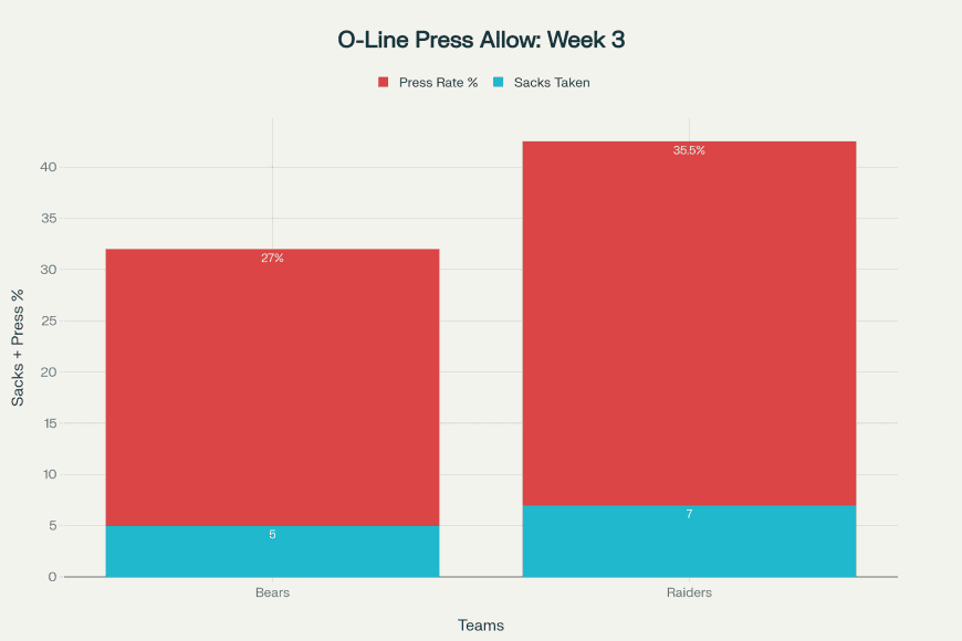 Chicago Bears vs. Las Vegas Raiders: O-Line Pressures Allowed in Week 3, 2025.