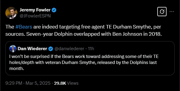It became obvious the Chicago Bears would be revamping the tight end position after they released veteran Gerald Everett last month. Head coach Ben Johnson knows the position well. He coached it at Boston College with the Miami Dolphins and the Detroit Lions. One can safely assume he has particular types he prefers for the position and Everett didn’t fit it. According to Dan Wiederer of the Chicago Tribune, it appears Johnson may have found the first piece in the reshaping of the position. This was quickly confirmed by Jeremy Fowler of ESPN.