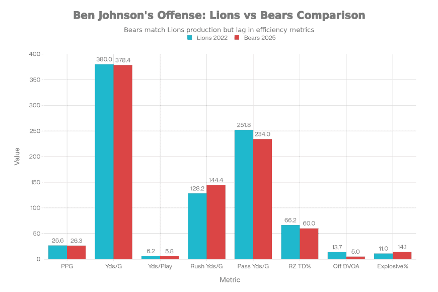 Ben Johnson’s 2025 Bears vs. 2022 Lions: offensive profile comparison on key metrics