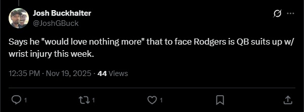 He lives for rubbing it in the face of every opponent. Rodgers had no problems doing it when he was with the Packers, acting all superior for years. Ben Johnson is not one to silently hope the Hall of Famer sits the game out. This head coach is begging for a chance to send the man into retirement with a firm reminder that his time has passed. The game sets up pretty well for the Bears.