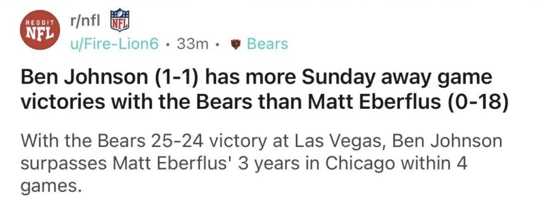 Eberflus was bad all around in his time with Chicago, but nothing sums up his tenure better than his 4-23 record on the road. There was not a safer bet on the planet than picking the Bears to lose when they were away from Soldier Field. That is the sign of a mentally weak football team. Those 4th quarter collapses were just the signs that drew headlines. Anybody who’d paid closer attention would’ve seen the problem far earlier. Watching Ben Johnson lead this team, made up of mostly the same players, to a go-ahead TD drive and then a field goal block to win it felt surreal. Having seen that movie end so many times with heartbreak under Eberflus, fans weren’t sure how to feel.