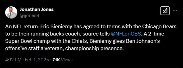 Bieniemy was a huge part of Patrick Mahomes’ ascend to NFL stardom in Kansas City, winning two championships together. He’d hoped to give his head coaching dreams a nudge by moving to Washington, where he’d call plays. Unfortunately, that didn’t go as planned. He was fired after one season and then parted ways with UCLA after handling their offensive coordinator job for a year. Now he’s coming back to the NFL, reuniting with Ryan Poles, who worked with him for years in Kansas City.