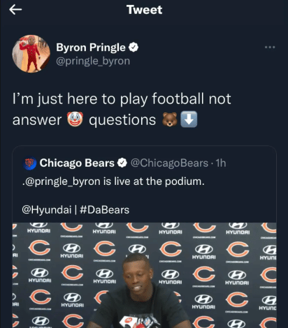 It is probably a blessing in disguise that Byron Pringle signed a one-year contract. If the Bears had locked him in with a two or three-year deal, this has a chance to get ugly. The team is in the first year of a new offense with a young quarterback in Justin Fields trying to find his way. It is possible Pringle won’t experience the same success he did last year in Kansas City.