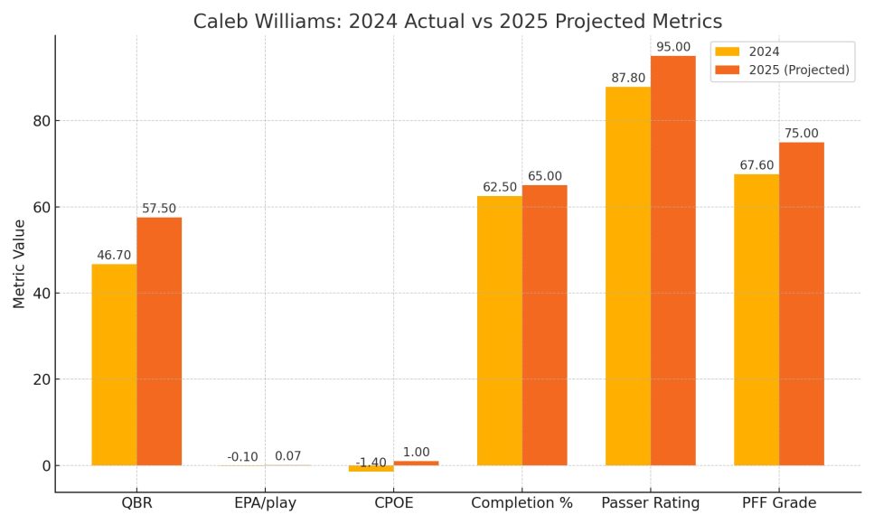 - Weapons Galore: D.J. Moore and Rome Odunze are back, and now Caleb Williams adds Colston Loveland and Luther Burden III to the mix, giving him one of the deepest and most dangerous weapons in the league.