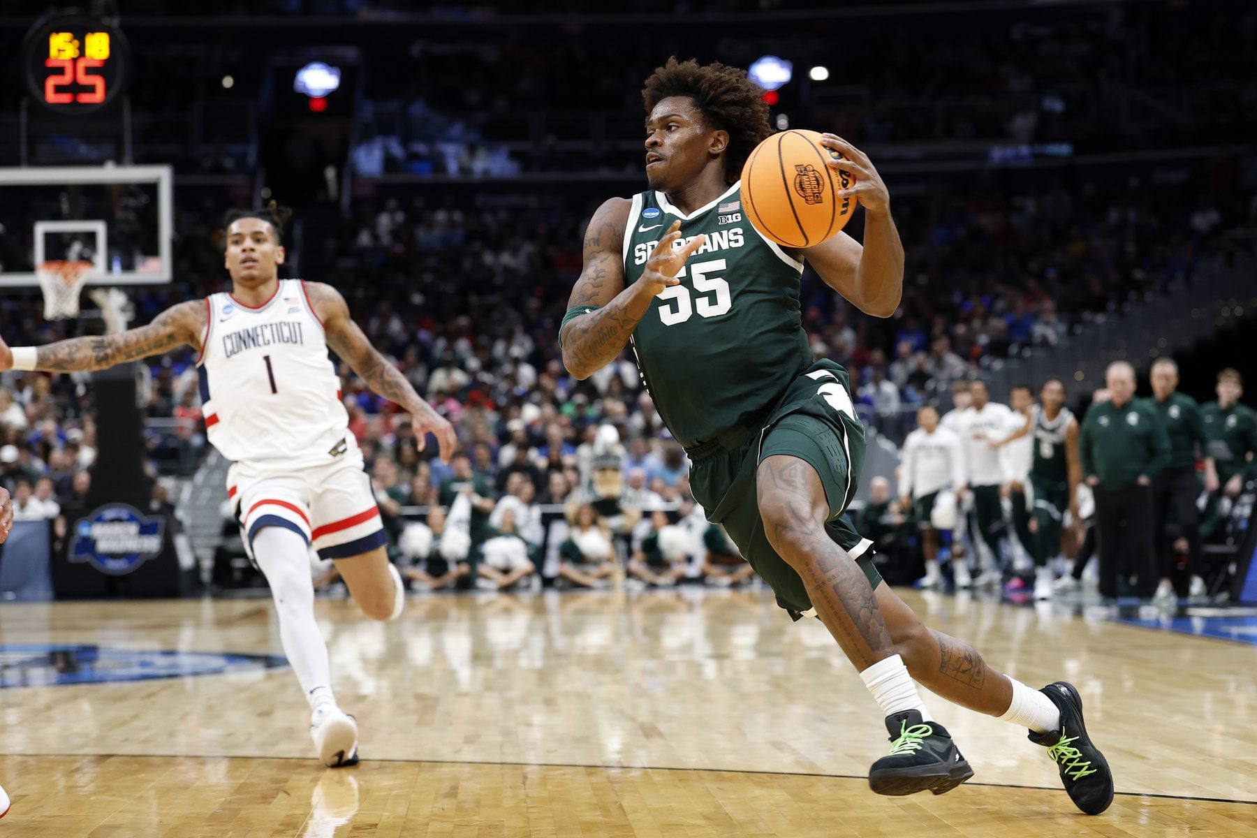 Word came out on Monday that the Bears have interest in college basketball junior Coen Carr as a possible crossover to the NFL. Carr is a 6’6″ forward for the Michigan State Spartans. His 12 points, five rebounds, and two assists per game helped the team reach the Sweet Sixteen this past season, falling in a close battle to eventual national championship participant UConn. Carr revealed on the I Am Athlete podcast that the Bears approached him about the possibility of playing football.