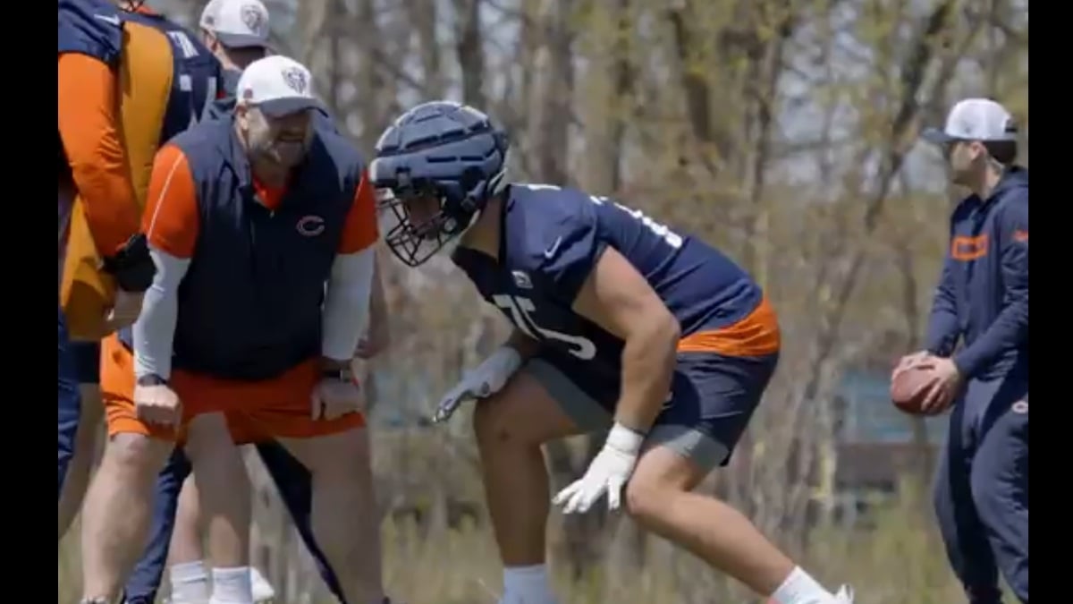 Ben Johnson knows his biggest roster decision by the end of training camp will be his left tackle. It is the only offensive position without a clear starter. Braxton Jones, Kiran Amegadjie, and Ozzy Trapilo are in a three-man race. Since camp began, they have rotated through the starting lineup, trading days where they worked with the #1 offense. Johnson said the Chicago Bears haven’t made any decisions yet, but expect to within two weeks, meaning after the first preseason game. The reasoning was simple. They had to make sure the starters had enough time to gel before Monday night against Minnesota in September.
