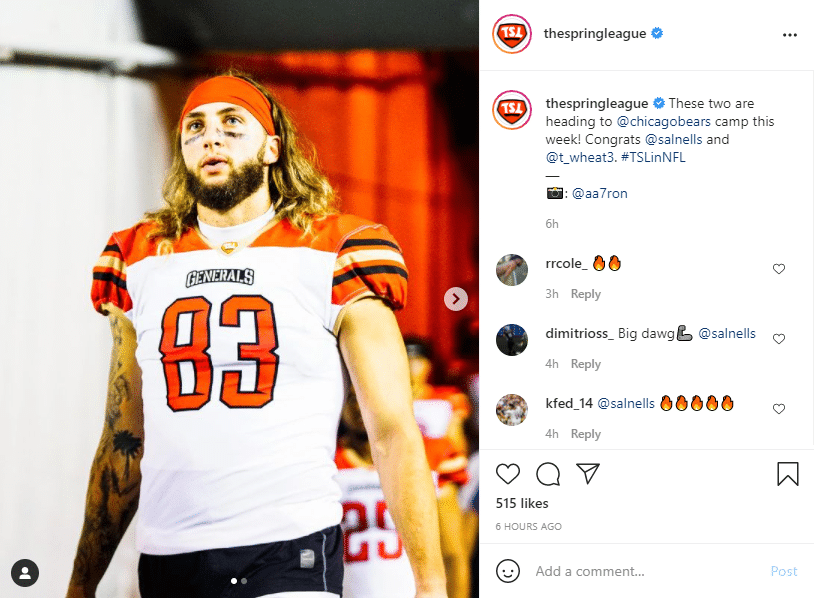 The Chicago Bears were notoriously uninterested when both the AAF and XFL tried their hands at spring football the past couple of years. Not a single player from either of those upstart leagues ended up on the Bears’ roster. Now suddenly things have shifted. Just 24 hours after it was revealed Tyrone Wheatley Jr. of the Spring League Blues team would attend their mandatory minicamps for a tryout. It seems another will join him in the form of Salvatore Cannella. He played for the Generals team.