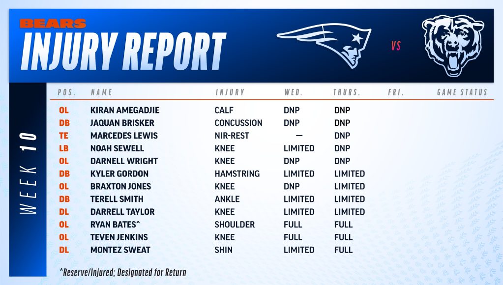 One was Ryan Bates. The trade acquisition had been out since the beginning of the season with a shoulder injury. He practiced in full on Thursday, putting him on track to be activated for the New England Patriots game. More importantly, left tackle Braxton Jones returned to practice on a limited basis, offering hope he can return as well.