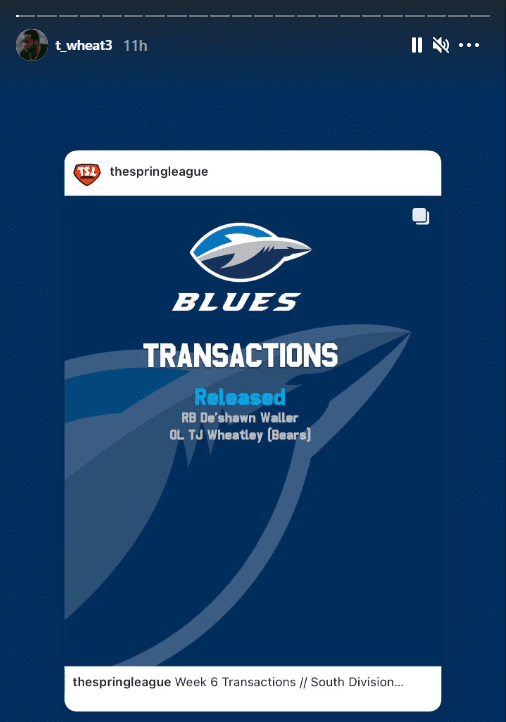 When The Spring League, a developmental league established by Brian Woods, came into being, Wheatley Jr. jumped at the chance to join in. He even switched positions from tight end to the offensive line. Eventually, he landed on the roster of the Blues team in the South division. He didn’t take long to impress it seems because he became their starting right tackle for the 2021 season. The Bears liked what they saw. So much that they decided to sign him as Wheatley himself revealed on Instagram.