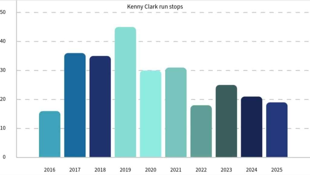 • 23 run stops in the past two seasons