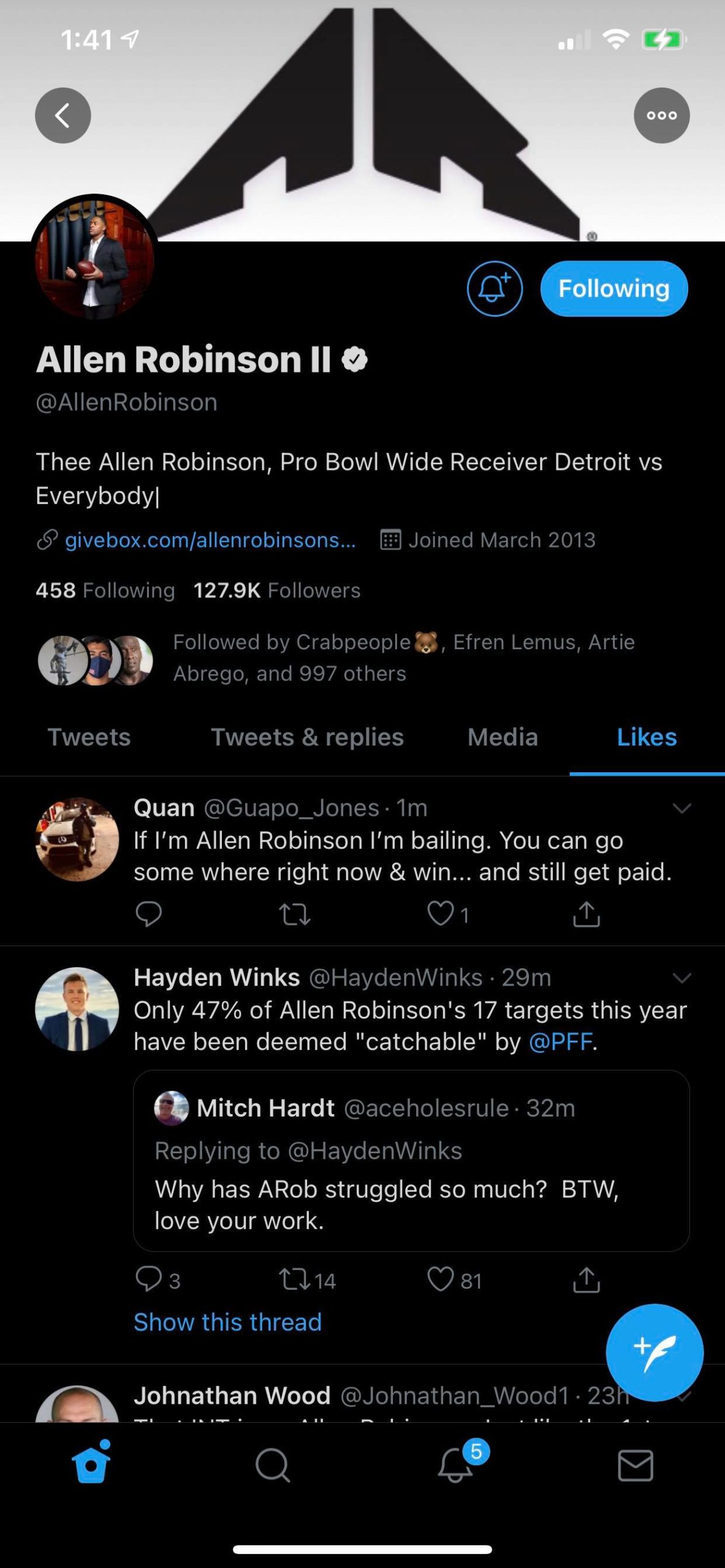 It feels more like this was an instance of Robinson being frustrated after a tough game against the Giants and acting out on Twitter. He later removed the like from his timeline. An indication he knew this or was simply trolling Bears fans who were on his case about yesterday. Either way, his frustrations aren’t likely to go away until he finally has his new deal.