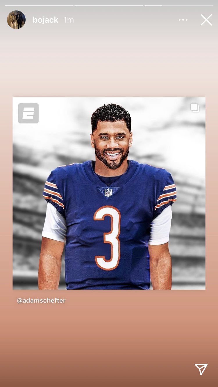 Adam Schefter of ESPN posted a tweet recently of Wilson photoshopped in a series of different jerseys. All four teams that his camp listed as preferred landing spots if the Seattle Seahawks trade him. The Dallas Cowboys, Las Vegas Raiders, New Orleans Saints, and the Bears. Jackson re-posted the Bears version on his Instagram. A surefire sign he doesn’t hate the idea at all.
