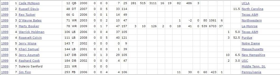 This GM is the perfect encapsulation of “too little, too late.” Mark Hatley looked like he might be finding a rhythm in 1999. He’d found Olin Kreutz the previous year. A few hits in this draft and he’d have the Bears pointed in the right direction. He almost did it too. Marty Booker was a Pro Bowl receiver. Roosevelt Colvin became a dangerous edge rusher on defense. Unfortunately all of that was offset by the awful selection of Cade McNown in the first round. Still arguably the greatest draft bust in franchise history.