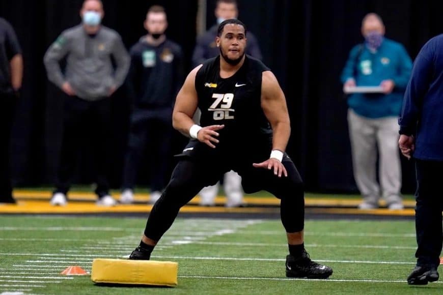 When it comes to the NFL draft, teams will find a myriad of ways to scrutinize you. Any slip up on tape or transgression off the field threatens to derail your chances. One thing that isn’t talked about enough that teams take seriously? Conditioning. They place a high premium on players who keep themselves in top shape. The Chicago Bears are no different. This is a big reason why Larry Borom fell in the 2021 draft.