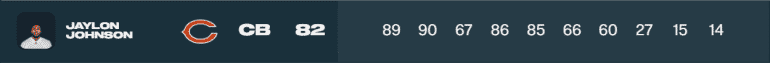 Considering the Bears had the #3 pass defense in the league last season, one would think Johnson might get some well-deserved love from the latest Madden 23 ratings. He held a 77 overall grade at the start of last year. The good news is that the mark improved. Sadly, it didn’t put him anywhere close to the top of the cornerback rankings. Far from it, actually. There were a total of 21 names with grades higher than his.