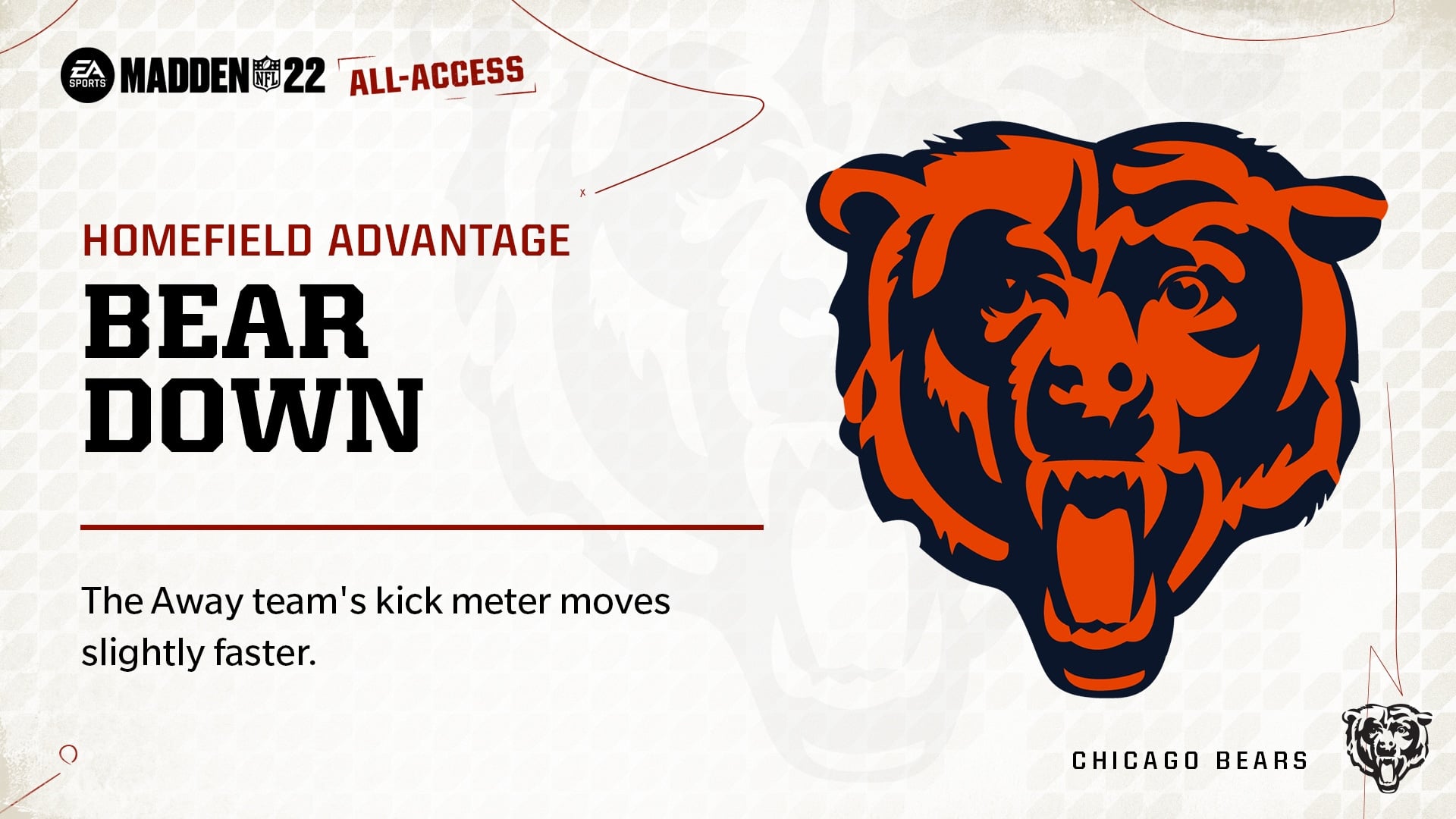 The Bears have always been a subject of ridicule by the Madden creators. Most notably with some of their player grades. This time though they didn’t even try to hide their troll. One of the new features included is homefield advantage. This is a development where home teams have actual advantages while visitors have disadvantages. For example, an opposing receiver will run an incorrect route on 3rd/4th down in New Orleans. In New York? Away players fatigue faster.
