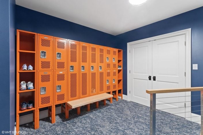 Nagy also installed actual honest-to-god lockers to a personal basketball court entryway. Complete with Bears colors, of course.