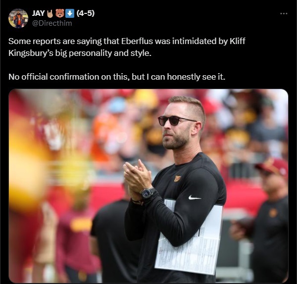 So, let’s get this straight. The Bears had plans to hire Kingsbury, who already had an established relationship with the quarterback they wanted to draft and a great reputation as an offensive mind. However, the head coach was so intimidated by his personality that he chose to pivot elsewhere, opting for the much more passive Waldron instead. Is the ego of Matt Eberflus really that fragile? Perhaps he sensed Kingsbury would be a threat to his job if the season didn’t go well, ironically setting himself up for failure in the process.