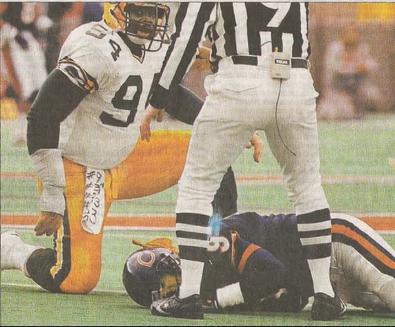 Martin was a dirty player long before he got to the NFL. He was known for hitting ball carriers late in high school. That reputation continued through college and into his pro career. Hell, the guy was literally cut by the Packers the next year because he got into a bar fight. He was the worst of the worst. Those who look closely at his uniform would’ve seen a towel on his waistband listing apparent jersey numbers. It was found out later that those were the numbers of specific Bears players he was tasked with trying to knock out of the game.