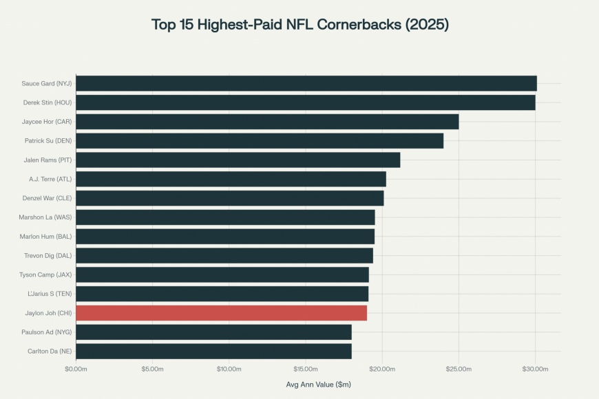 Contrast that with Sauce Gardner’s 4‑year, $120.4 M extension at $30.1 M/year, including $60 M guaranteed. Johnson cost ~$11 M less annually — even though his production in 2024 was arguably superior.