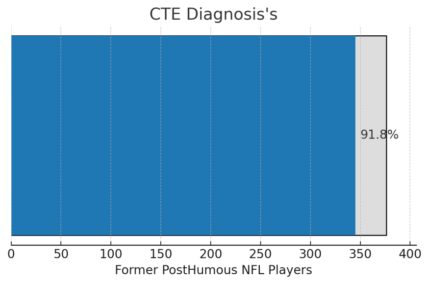 Boston University has diagnosed CTE in 345 of 376 former NFL players whose brains were studied posthumously. That’s 91.7%. Sure, there’s selection bias — families don’t donate the brains of guys who retire healthy and happy. But let’s not pretend this number is meaningless.