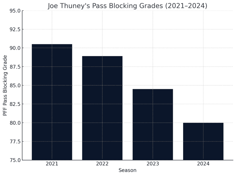 - Only 2 sacks allowed in 928 pass-blocking snaps (2022–2024)