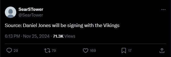 Enter SearSTower. The Twitter handle has become a new sensation lately for its surprisingly accurate information. It was the first to state that former New York Giants quarterback Daniel Jones was signing with the Minnesota Vikings.