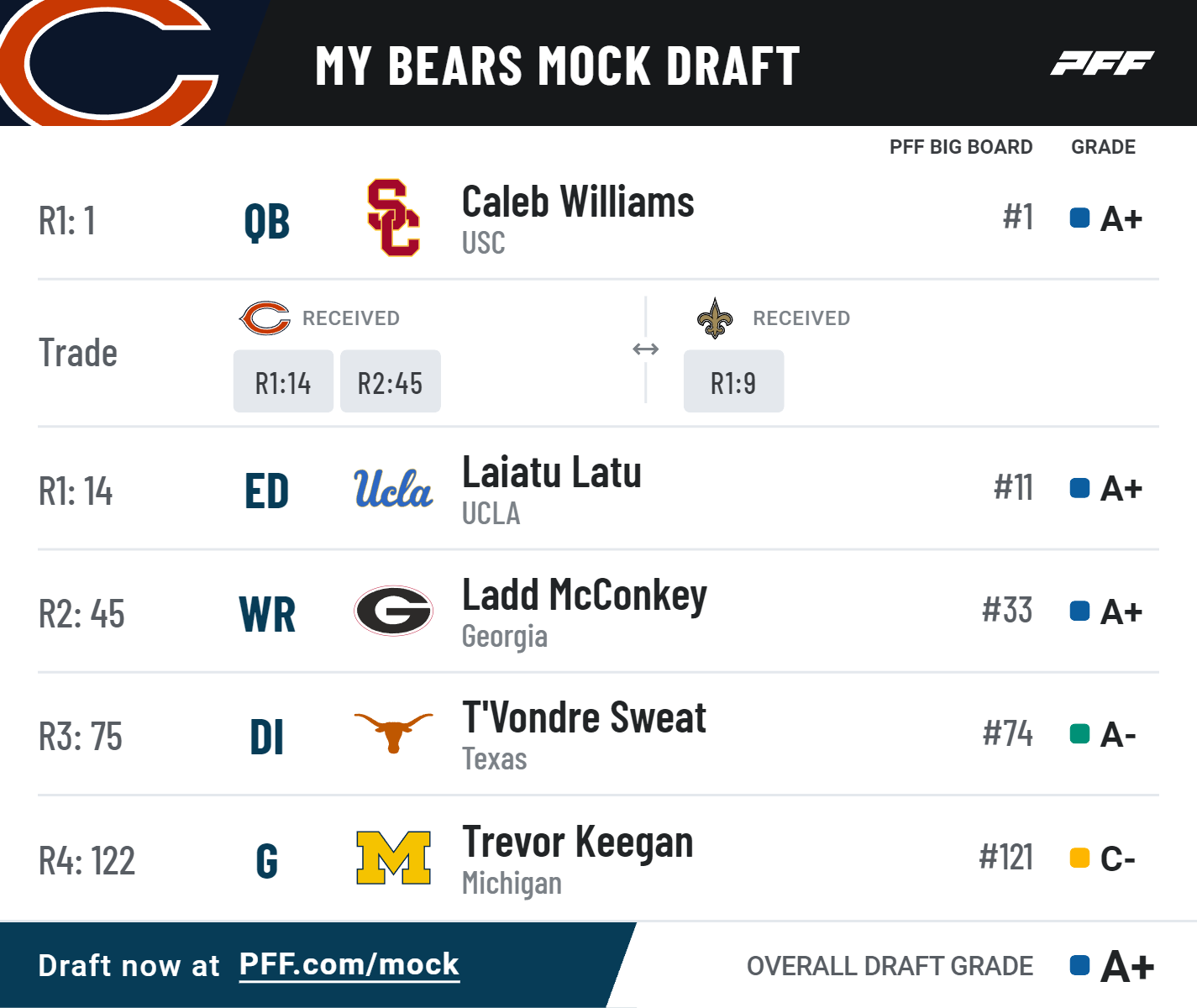 - 2023: Bears trade #9 to Eagles for #10 and future 4th round pick