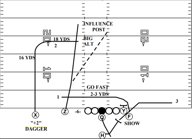 - You’ll see this design a TON — deep shot over a defense trusting the run.