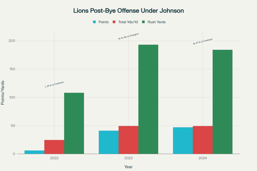 We’ll start with the ugly. Johnson’s first post-bye game in 2022 came against Dallas — a road matchup where the Lions’ offense managed just 246 total yards and coughed up a 24-6 loss. That’s not just bad, that’s Dan Campbell threatening to chew kneecaps out of frustration bad.