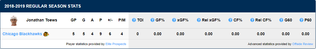 If you’ve been following the Blackhawks this season, then you know Jonathan Toews has been on an absolute tear to start this season. Toews has had some help this offseason in the form of a new trainer, Adam Oates. He currently has 9 points (5G, 4A) in 5 games.