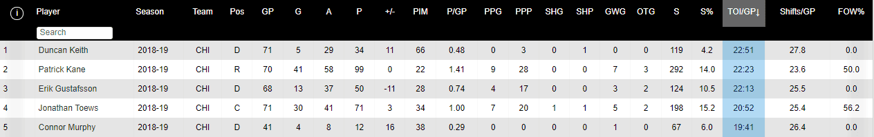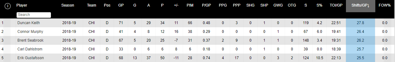 Connor Murphy is ranked 2nd on Blackhawks in Shifts/GP and 63rd amongst league leaders (via NHL.com)