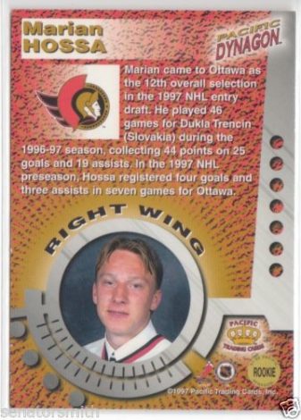 He wasn’t drafted by the Blackhawks but Marian Hossa is loved by Blackhawks fans. I had to pull up this photo of one of his rookie cards because usable photos are near impossible to find. “Big Hoss” has been around a long time and the numbers he still puts up are a good reason.
