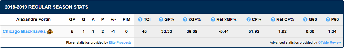 Alexandre Fortin rode his momentum into the preseason games and regular season. Although he initially started the season off with the Rockford IceHogs, it wasn’t long before he was called up to play with the Blackhawks. Fortin was given his first opportunity on October 11th against the Minnesota Wild and hasn’t looked back since.