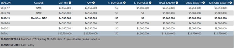Artem Anisimov has a modified no-trade clause and that limits the Blackhawks’ options even more. He would have to submit a list of 10 teams that he would approve being traded to. StanBo just couldn’t help but hand out another NMC, but he’s working on being the best version of himself lately, hence all of the good trades. Here’s the breakdown on Anisimov’s contract: