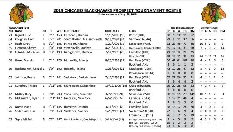 The Blackhawks will be bringing 14 forwards to Traverse City, Michigan next week. Some names that jump out (besides Kirby Dach) are MacKenzie Entwistle, Brandon Hagel, Philipp Kurashev, and Michal Teply.