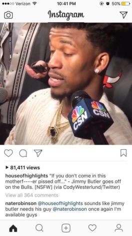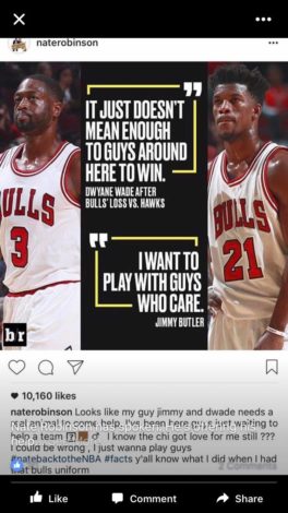And on top of all this, former Bulls point guard turned failed NFL star Nate Robinson has gone out of his way to inform Jimmy Butler and the Bulls via Instagram he is very available.